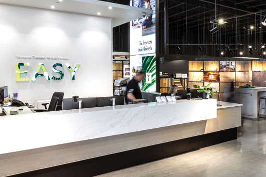At JP Flooring our goal was simple: cut through the usual clutter found in flooring showrooms to create a space where the floors can really shine. We designed a showroom that was clean, intuitive, and redefined the customer experience. The result? An experience that was easier to navigate for the customer, refined the sales pitch for the staff, and lead to more flooring sales. The experience caught the attention of our next client, Thornton Flooring in Sioux Falls, who wanted to raise the bar, too.